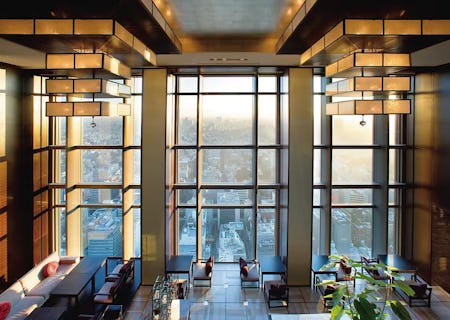 Pillow menus, deep bathtubs and a serious view are all yours to enjoy at the Mandarin Oriental - they even provide binoculars! All rooms are decorated in shades of champagne and cream with splashes of purple scatter cushions and potted orchids. The en-suite bathroom is behind a glass wall, which can be cleverly obscured at the touch of a button. Each room has a window-side chaise longe while certain suites feature authentic Japanese motifs and crafts. The grandest is the Presidential Suite, which has a dining area and library, and a bedroom ceiling that appears as if you're looking through tree branches.