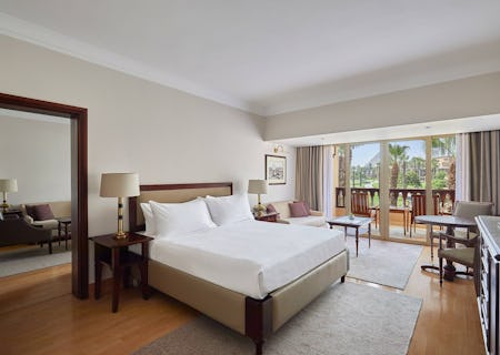 The rooms are clean-cut and demure, decorated with dark wood furnishings, patterned rugs, and black-and-white photos from across the years. Each has a private balcony with a garden or the coveted view of the Pyramids, while the Grand Deluxe rooms feature ornate chests and furnishings as well as a dining area. The marble bathrooms boast large tubs and Acca Kappa amenities. The suites are especially spacious and come with a separate lounge and two balconies. Certain rooms also have access to the 'Executive Lounge', which provides grab&go snacks for your adventures, as well as treats for afternoon tea.