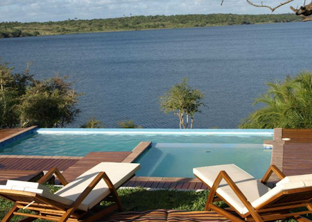 Between the wooden jetty, the pool deck and the shaded lapa, the outdoor common areas are full of charm and offer plenty of quiet places with comfortable recliners on which to relax and enjoy the view. Inside is a bar area with a gorgeous wooden countertop, and an adjoining lounge with comfortable seating. The separate dining room has sliding glass doors to make the most of the lake views. Hammocks are strung about the garden, and there's a first-rate spa.