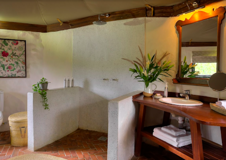The heart of Ololo is a traditional colonial farmhouse which has been restored and extended by the owners. Its rooms feature a blend of traditional African and modern styles. There is a large open living room with a fireplace, and an adjoining library. All the rooms in the original building have views over the national park. The restaurant, ‘The Kitchen at Ololo’, is open to the garden and serves farm-fresh dishes. Tables are often set up on the terrace for the best views.