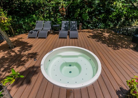 There are 13 rooms, each named after a place visited and loved by the owners, and decorated accordingly. The Provence room is accented with shades of lavender, whilst the India rooms are draped in vivid textiles. Features vary from room to room but can include private hot tubs, terraces strung with hammocks, and large bathrooms. Overall, the rooms are light-filled and artfully done with bold design choices accented by chic, minimalist furnishings.