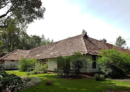 Rajakkad serves up South Indian cuisine with subtle Mediterranean influences, which can be enjoyed in the simple dining room or out in the garden. You can also request a private dinner! Grab a book from the library next door to enjoy in a shady spot (or one of the three courtyards) and head up to the stone platform for a yoga session, encircled by flowering trees, bamboo and palms. Rajakkad's lounge has a traditional feel, decked out in antiques from Pondicherry, mid-century furnishings and eclectic decor.