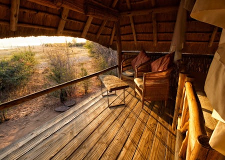 The heart of camp is the double-storey wood and thatch boma. The sand-floor lower level is home to the dining room, buffet and simple bar. Functioning as a lounge, is a collection of camping chairs around a coffee table that is stocked with informative local literature and guidebooks. Upstairs you'll find decent views over the lake, another buffet counter and another, more substantially furnished lounge. Around the base of the boma is where post-dinner drinks typically happen around a crackling campfire, just beyond the shore of the lake.