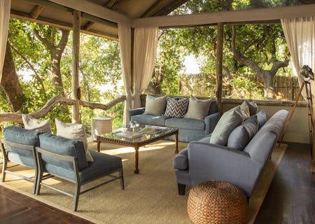 Shinde Camp's unique main area is a free-flowing, multi-levelled canvas tree house, with a wooden staircase linking the decks. Set amongst intertwined ebony, fig and mangosteen trees, it has a real Robinson Crusoe atmosphere. The interior is a more plush affair, however, with comfy sofas, chairs and polished-wood furnishings in the lounge and a banquet-style seating arrangement in the dining area, with one long table at which delicious home-style meals are shared. Beyond, there's a camp fire area and an inviting swimming pool.