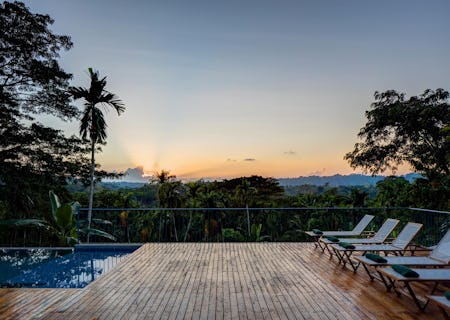 The are three rooms, three suites and one villa to choose from and each has its own unique personality and style. Choose the Garden Suite for an alfresco baths and afternoons in the private garden, the Tower Room for your own lily pond and a fluttering hammock or the glass-walled Skyroom for the best views. Across the board, beautiful textiles and block-printed fabrics bring a pop of colour to the tranquil white-washed walls and antiques give a sense of history and place.