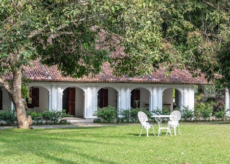 Take day trips to the city to experience the culture of Kandy and stroll through the Botanical Peradeniya Gardens, learn at the Ceylon Tea Museum, or take a tour of the British Garrison Cemetery. Spiritually-minded visitors will find plenty of temples to explore, and those looking to get up close with wildlife should make the trip to the Udawattakelle Sanctuary. We'd also forgive anyone who decided to take a day or two to relax around the pool, breaking only to enjoy a private yoga session or a massage.