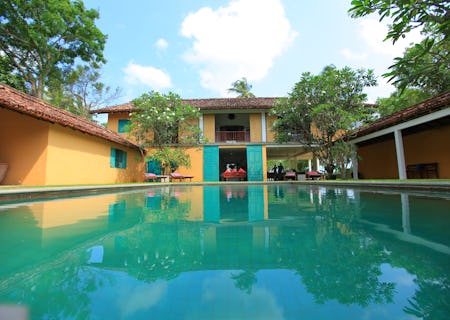 In its mustard-coloured shell, the boundaries between inside and outside seem to dissolve at The Last House. Pergola-roofed walkways lead between spacious living areas with shabby-chic furnishings and secret gardens complete with bubbling water features. Set in a tropical garden, you'll find a small but inviting pool and beyond a wall of greenery is the beach. Dining is anything but conventional - enjoy private meals in your room, barbecue on the beach or al fresco seafood dinners on the veranda including the famous Sri Lankan crab curry.