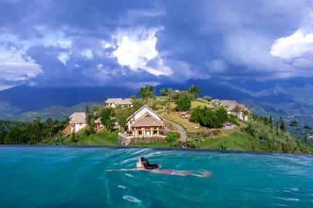 Topas was built with the aim to leave the lightest footprint but the largest impact, with an almost entirely local staff, and sustainable ingredients used in every meal. You'll mostly dine at the Stilt House, original Tay structures carefully transplanted, which serves a medley of Vietnamese flavours. At the alfresco Pavilion, enjoy delicacies grilled over an open fire, and for a designer coffee or cocktail, head to The Lounge. There are two saltwater pools, one beside the bar and the other, an adults-only spot with a Jacuzzi. Indulge in traditional Red Dzao remedies, Sapa chocolate body polishes, and Tibetan massages at the thatched spa.