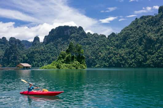 In Khao Sok National Park, adventure comes in as many forms as you can think of. The setting alone is astounding with limestone karsts erupt from turquoise channels and waterfalls that cascade amongst the trees of one of the oldest rainforests on Earth. Take to the water of Cheow Lan Lake or its winding tributaries on a canoe or tranquil longtail boat ride as incredible birdlife flutters around, or explore the jungle on foot and keep your eyes peeled for Malayan sun bear and wild elephant. You could even spend a few hours at a sanctuary for these gentle giants.