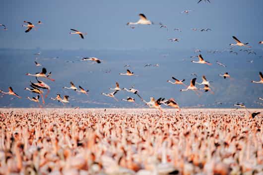 One of Kenya’s most popular national parks thanks to its easy location and dreamy scenery, Lake Nakuru is varied and diverse and home to a good cast of the animal kingdom. As ever, game drives are the name of the game and you’ll traverse terrain ranging from the mist-shrouded lakeshore to pretty acacia woodlands. White rhino are plenty, especially by the lake, and giraffe, hippo and buffalo are also easy to spot. The big cats are present but elusive, and interestingly, there are no elephants. The park is fenced so if you’re visiting slightly off-season, game viewing should still be good – but it does get busy. The birding at Nakuru is glorious. Whilst the famous pink flamingo (Greater and Lesser species) are not quite as numerous as they once were, they still make a pretty sight - and 500 recorded species of other birds should make up for it. Raptors include Verreaux’s and the long-crested eagle, and the long-tailed widowbird is another excellent tick on your bird list.
